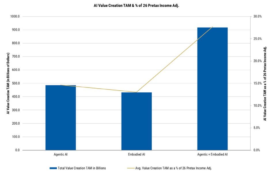 摩根士丹利合计,AI的全面接收将为标普500公司带来约9200亿好意思元的恒久收益,跳动了标普500公司2026年预期税前总收入的25%。此外改日管事市蚁合,90%的事业将在某种进度上受到AI自动化和增强的影响,其中必需品分销/零卖、房地产处治与开导、交通运载以及医疗配置与服务等行业的AI价值创造空间最大。